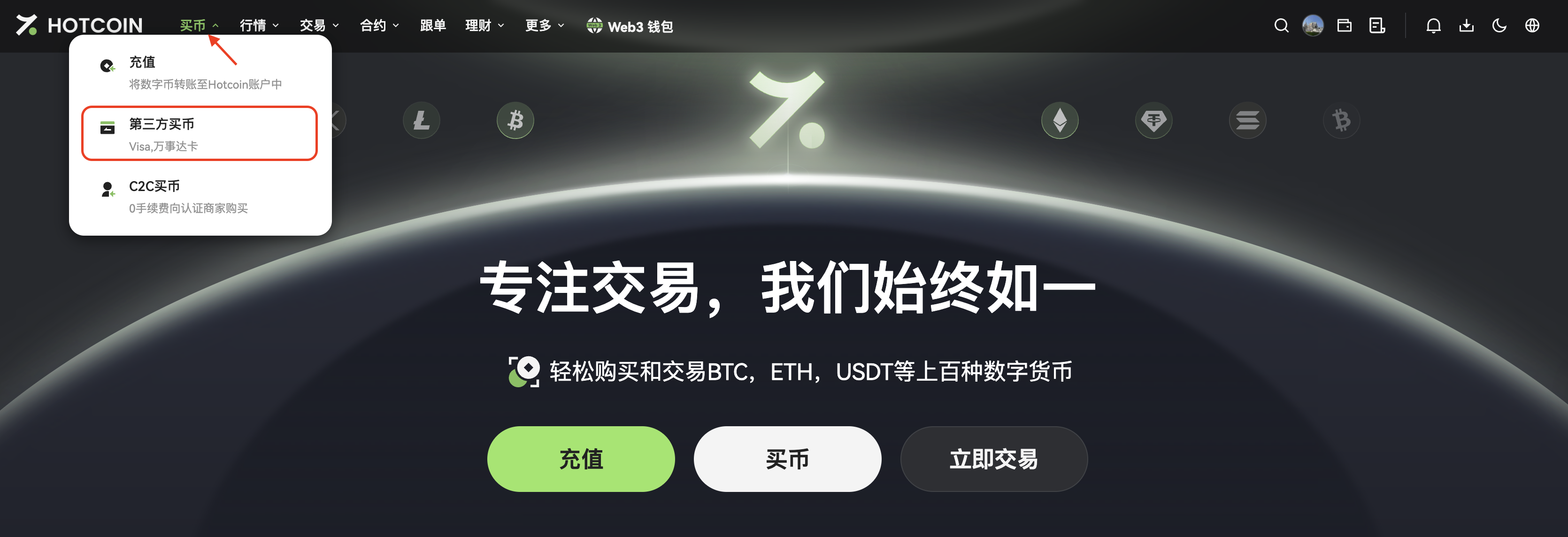 步骤 1:进入买币界面
