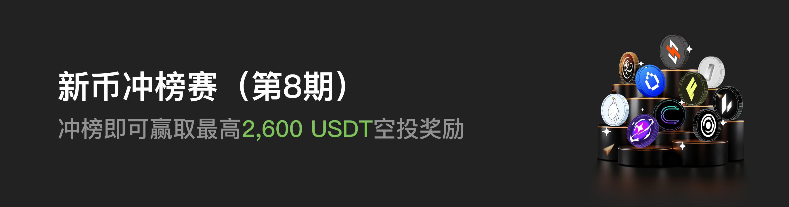 新币冲榜赛(第8期)|冲榜即可赢取最高 2,600USDT 空投奖励