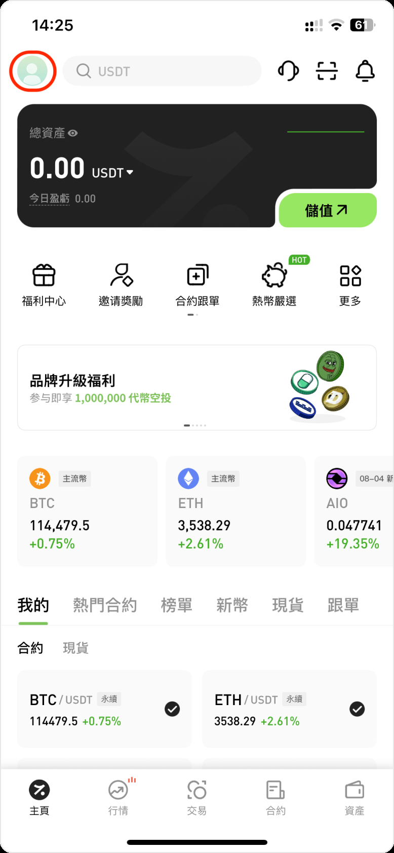 第一步:登入 Hotcoin 帳戶,進入「個人中心」;
