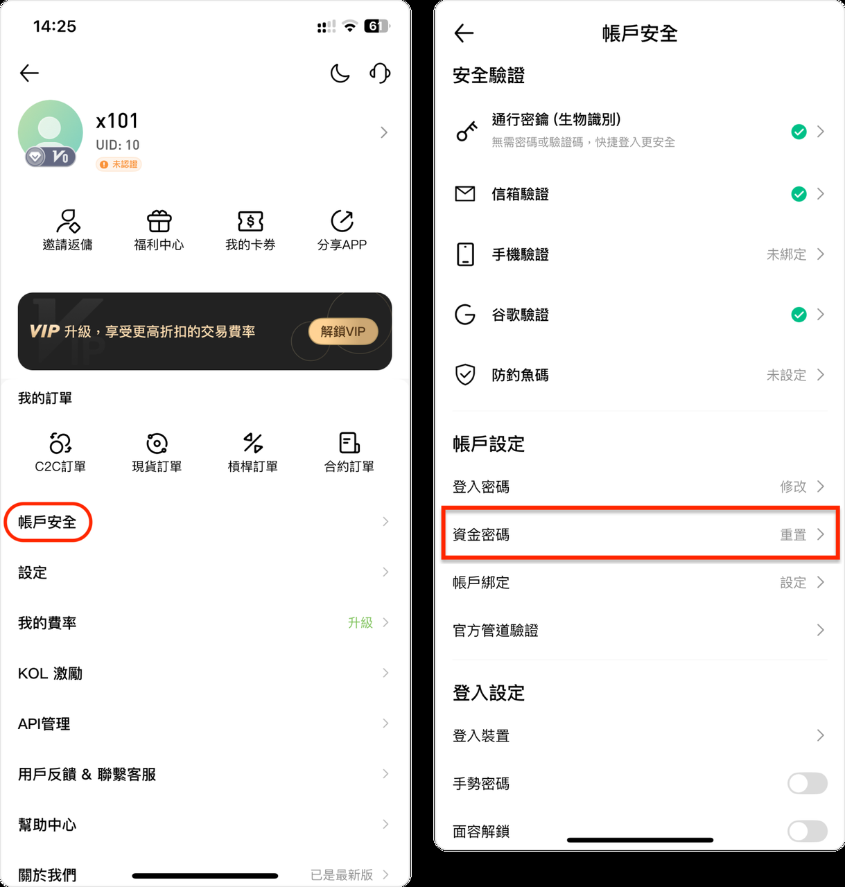如何設定資金密碼: