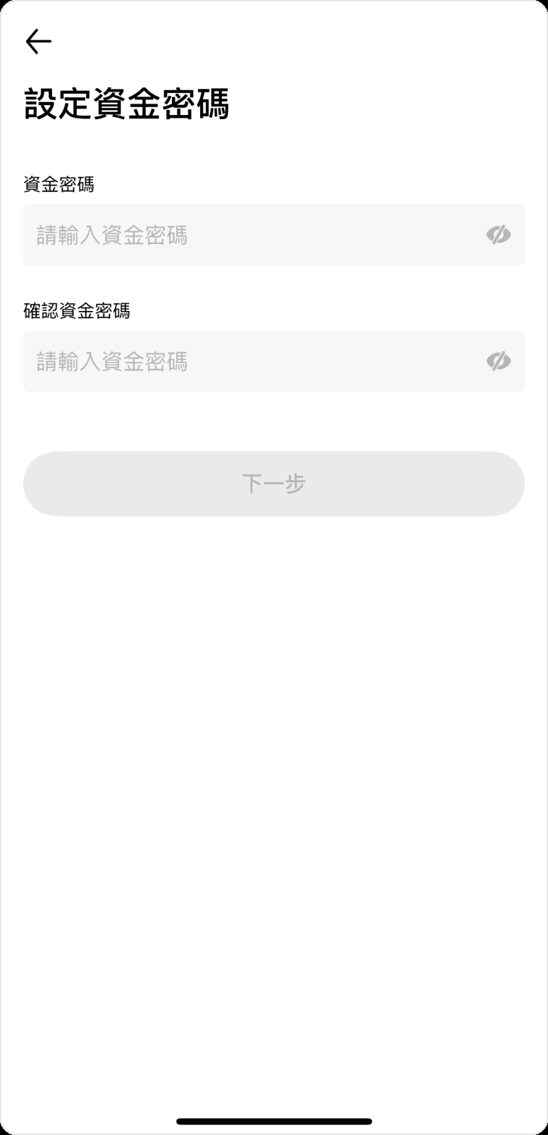 第三步: 設定資金密碼,確認兩次輸入的密碼一致後,點擊「下一步」。當系統提示「密碼設定成功」後,將自動返回「帳戶安全」頁面。